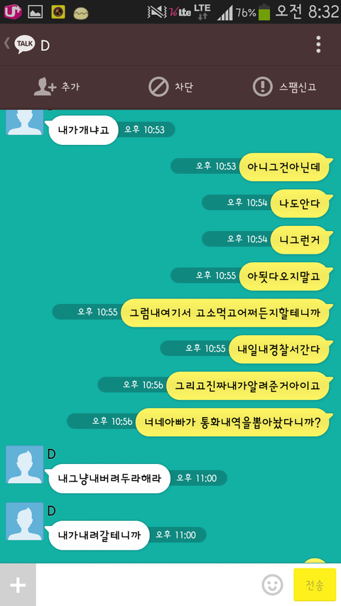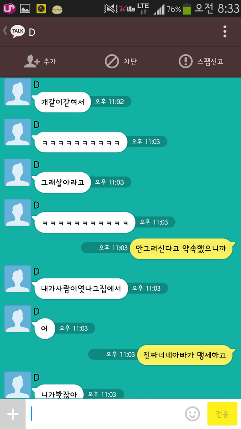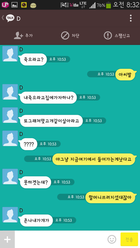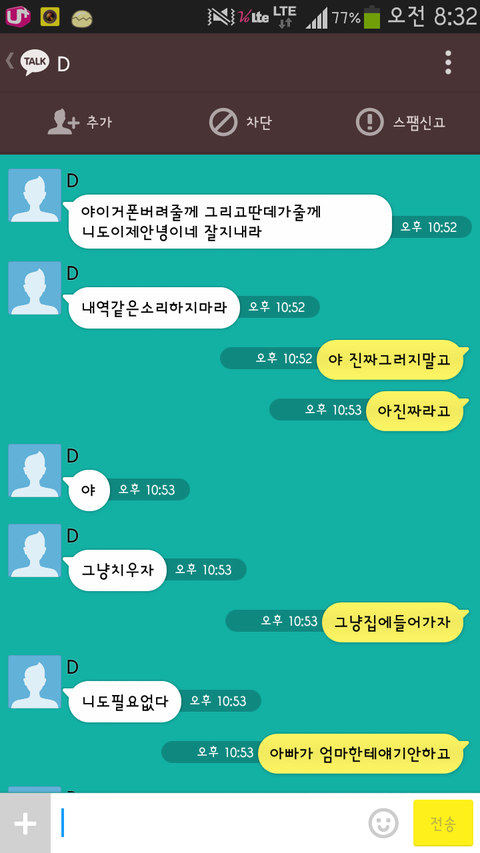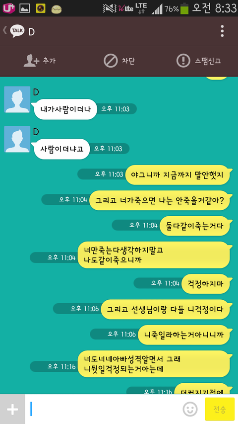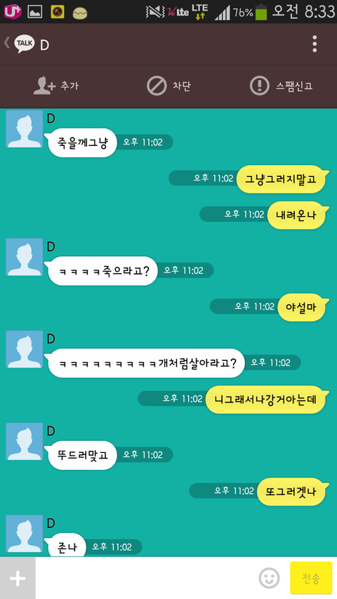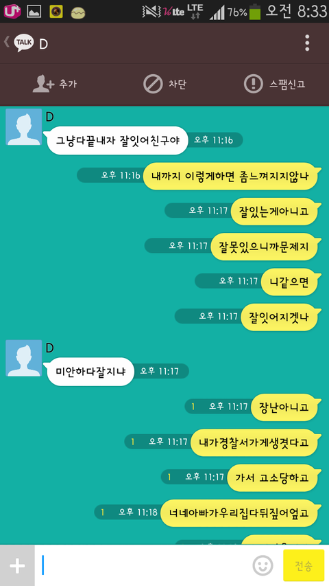 그리고 친구란년은 내가 나죽게생겼으니까 집에 오라했더니 ㅇㅇ잘살아 ㅃㅃ 이ㅈㄹ