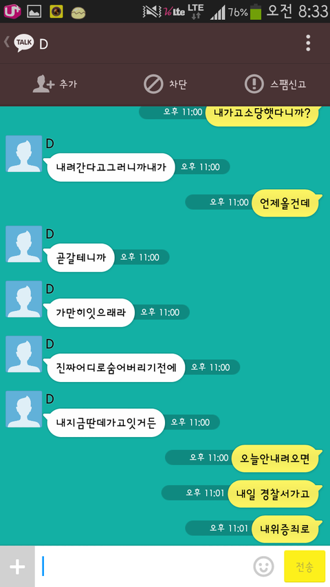 근데 아저씨 빡쳐서 나 고소하고 학교도 다 짜른다고함