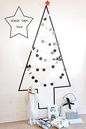 테이프로 트리 모양 만들어주고 장식만 곱게 달아주면 끝!!