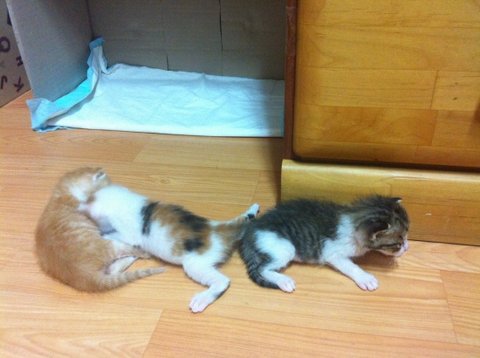 어미를 찾아 하루종일 울었던 똘똘한 삼냥이 ㅠㅠ 다른 애기들은 상태가 넘 안 좋아서 어미