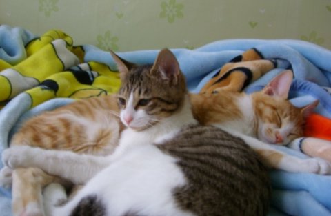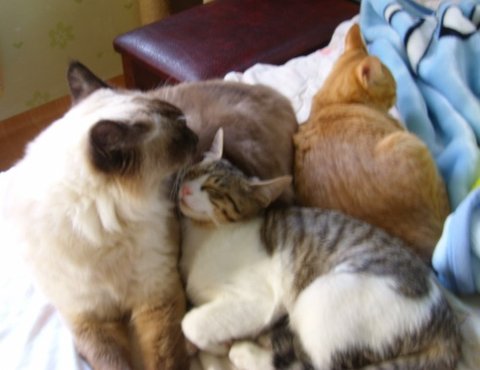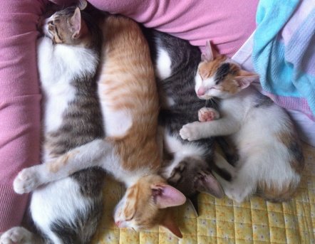 넷이 함께였던 모습. 지금은 막둥이와 삼냥이는 함께 새가족 품에 있답니다. ^^