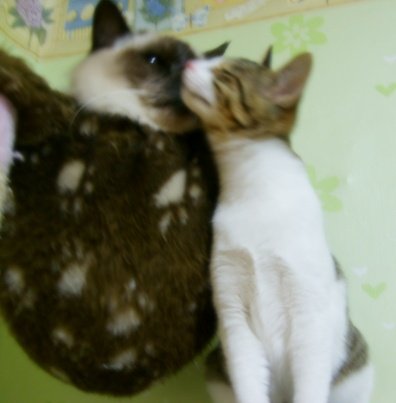 큰오빠~~~ 아잉♥ 애교부리는 소피. 등돌린 상남자 살구. ㅋ 난 추워서 붙어있는 거다!