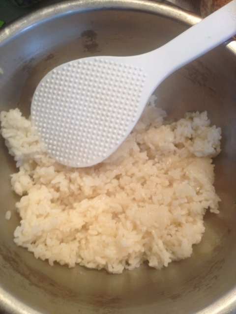 요것을 밥에 골고루 뿌린수 주걱으로 잘 비벼줍니다.