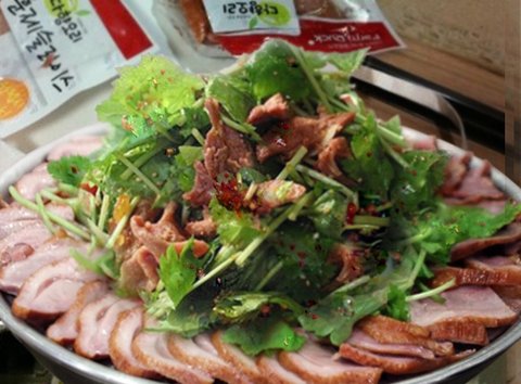 훈제오리는 쫙 펼쳐서 솥같이 큰냄비가있길래 아래 물넣고 쟁반채로 얹어서 찌고~