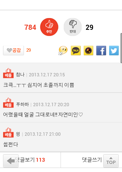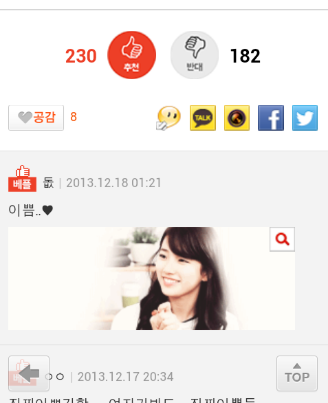 여기서보면 이글이 수지이쁘단글이거든요?근데 추천에비해 반대가너무많아요