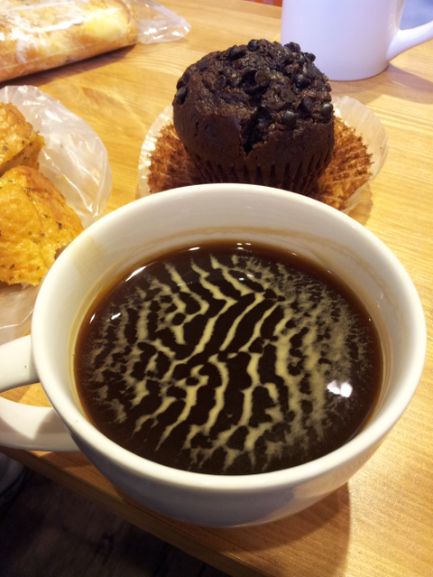 아침에 커피타서 들고오는 사이에 흔들려서인지