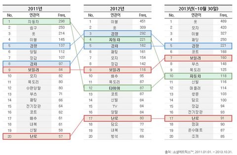 정부포털에서 제공하는 검색어 순위를 보자면 패딩의 순위 급부상을 눈 여겨 볼 수 있습니다. 역쉬..14위 -> 6위 -> 4위로 훌쩍!하기사 최근 등골브레이커 등등 많은 이유로 이슈가 되기도 했죠!자세한 월동준비 관련자료는 여기