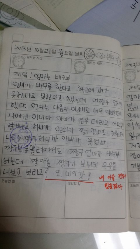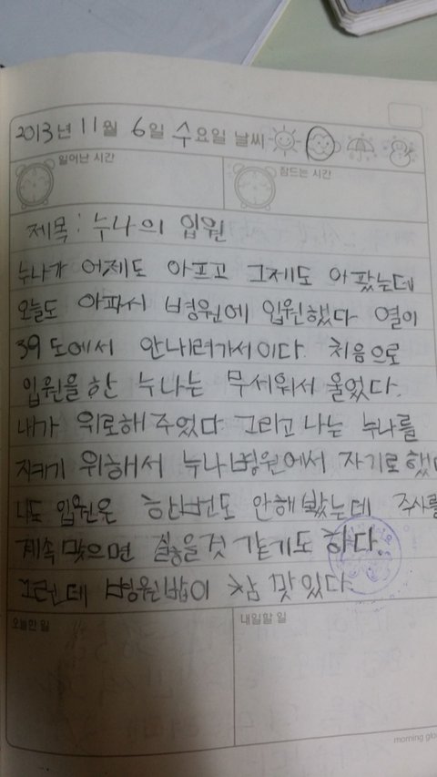 넌..참 훌륭한 아이야.. 일기를 잘 써서가 아니고.. 2학년 초반에 했던