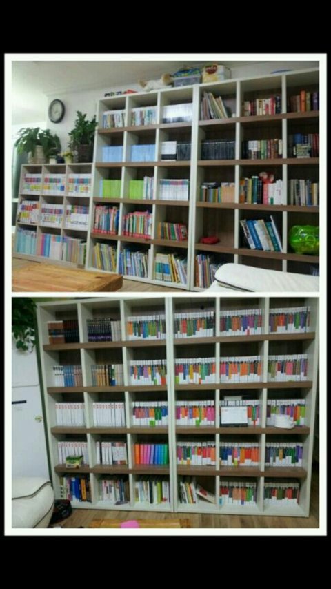 내가 책을 좋아하기 때문에 거실엔 티비 대신 책장이 있음. 언제 어디서라도