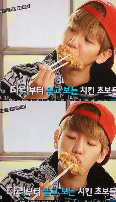 백현이 쇼타임에서 치킨 먹을 때