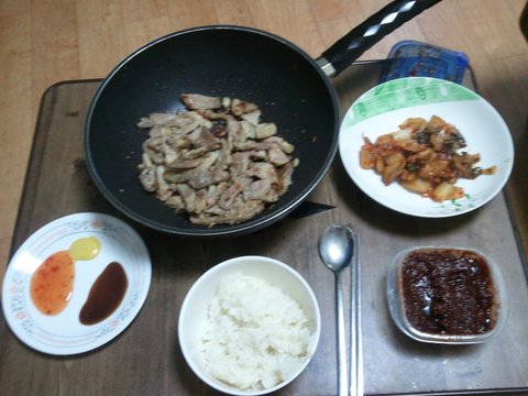 혼자 먹는 밥상사진은 저 혼자 밥먹을 때도 라면으로 때우지 않고 잘 먹고 있다고 와이프 한테 보고하는 사진이에요 ㅎㅎ