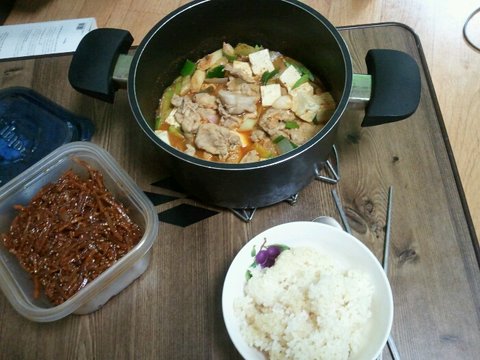아내가 인스턴트 음식을 싫어해서 다양한 밑반찬도 만들면서 재미있게 살고있어요. 원래 요리는 즐겨 하던 편이었는데 밑반찬까지는 잘 안했었거든요. 그동안 시금치무침,가지무침,콩나물 무침,쇠고기 장조림, 버섯볶음, 감자조림, 감자볶음, 고구마 맛탕, 오징어국, 미역국, 콩나물국, 갈비찜, 돼지갈비찜, 간장찜닭, 김치찌개,고추장찌개, 된장찌개, 오리훈제구이, 돼지고기 불백,주물럭,탕수육,해물파전, 굴파전, 김치부침개, 스테이크, 까르보나라, 참치비빔밥, 김치볶음밥정도로 한 달 동안 저녁 해먹었네요.