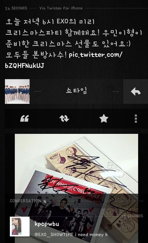 오늘 쇼타임 민석이 선물있대!!
