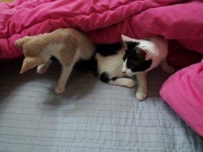 미호가 자는데 둥이가 뒤로올세라 뒤로못오게 발로 미는중