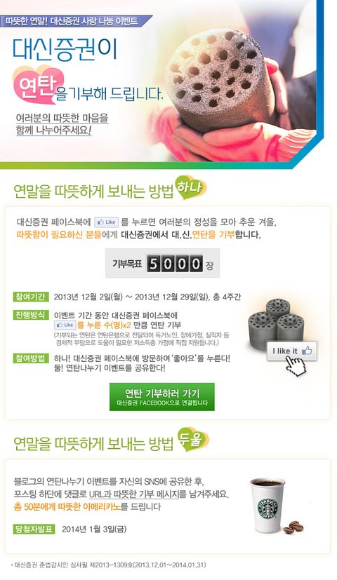 지금 대신증권에서는 연탄기부 이벤트를 진행하고 있답니다.