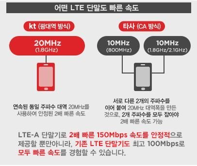 지금까지 KT의 광고 커피청년과 스노우맨을 통해서 KT 광대역LTE-A만의 큰 특징을 살펴봤는데요. 아마 여기서 궁금증 하나가 생기실 거에요! ‘다른 통신사도 LTE-A라고 똑같이 광고하던데, 거기랑 뭐가 다른 거야?’