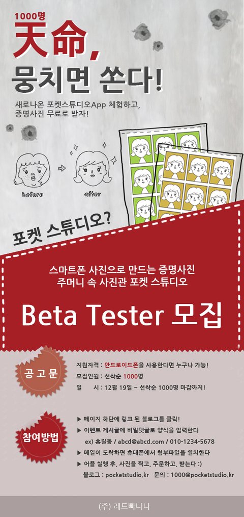 포켓스토디오 天命 프로젝트, 스마트폰 증명사진 무료로 보내드립니다.