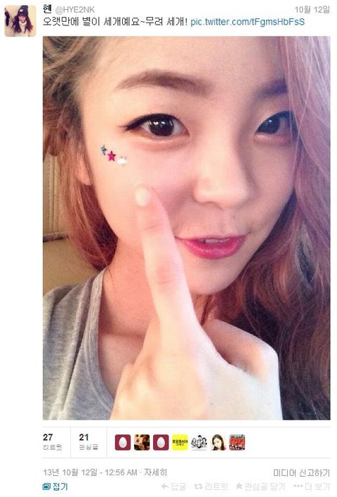 혜이니 은근 셀카와 트윗을 즐기는 것 같아요!ㅎㅎ