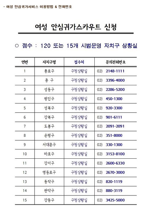 그리고 번호를 모르겠으면, 120 다산콜센터로 연결해도 연결이 가능하다고 하니 참고!!!