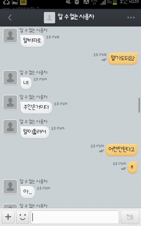 점심에 집으로 와 자긴 절대아니다 대화만했다 회사동료가 알려줘서 아는거다 자기 못믿냐 하네요