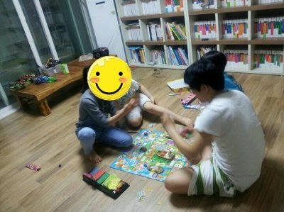나가봤더니 애들 사이에 껴서 애들 하는 놀이를 하며.. 종이돈 따위에 목숨걸며