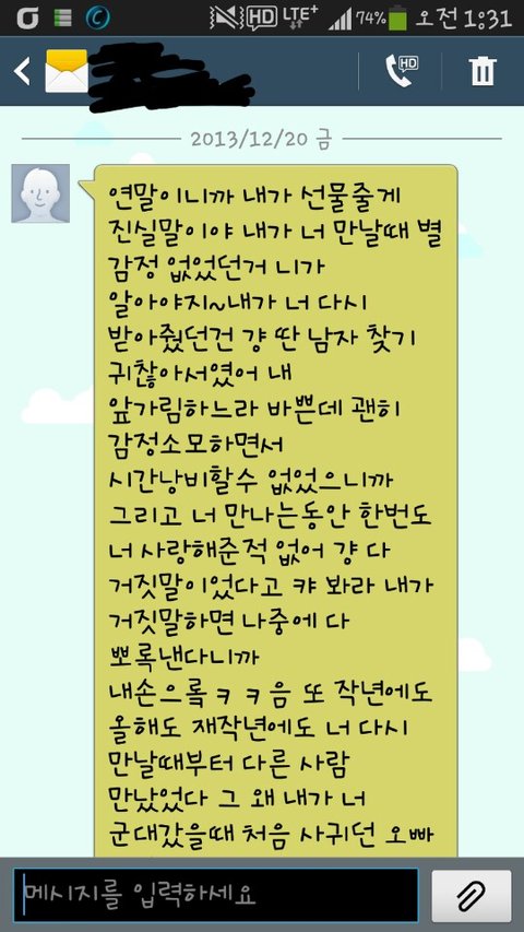 100일휴가때 편지 100통써준것 읽어보지도 않고 쓰레기통에 버리고 그냥 올라감.