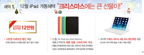 올레닷컴은 아이패드 개통 혜택으로 단말기 할부요금 청구시 12만원 할인과 애플 정품 스마트 커버, 로지텍 키보드 케이스 4종 할인쿠폰 제공 등 다양한 선물을 제공하고 있는데요. 무엇보다도 스마트 커버가 가장 욕심이 나네요. ㅎㅎ