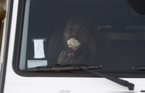 자신의 슈퍼카에서 나오는 칸예 파파라치가 뜸