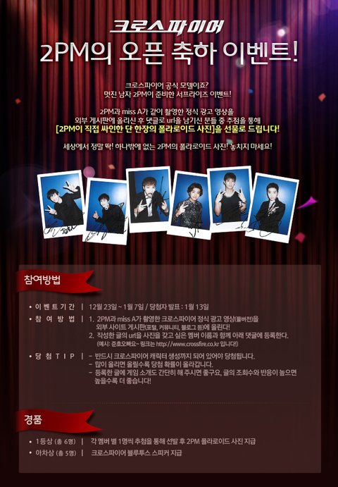 크로스파이어의 홍보모델로 활동하는 2pm의 홍보영상을 자신의 블로그 or sns or 커뮤니티