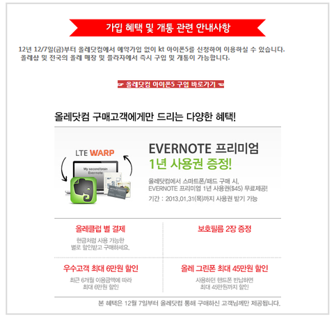 여기에 쓰던폰 반납할인(올레 그린폰 매입) 을 해주고 있어서 아이폰5 의 경우에는