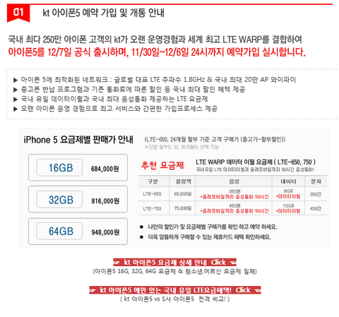 게다가 지금 KT 올레닷컴에서 LTE 요금제 선택시 아이폰5S, 아이폰5C 의 단말 할인을