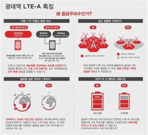 KT 광대역 LTE는 주력주파수 1.8GHz 대역으로 서비스를 제공 하기 때문에 아이폰5S,5C 사용할 시 탄탄한 커버리지로 안정적이고 빠른 광대역 LTE 서비스를 제공하고, 타사 대비 최대 6배 많은 KT 광대역 LTE 기지국이 촘촘하게 구축되어 있어 더욱 짱이라는~ㅎㅎ