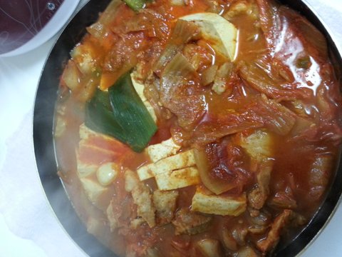 냄비바닥에 묵은지 그리고 등뼈 그리고 다시 묵은지로
