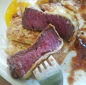 안심스테이크!!!!!!!!!!!!!!!! 위에 치즈녹이고 반숙덕분에 살살녹았음 ㅠㅠ