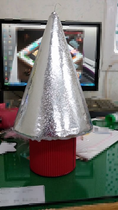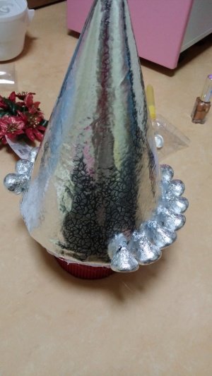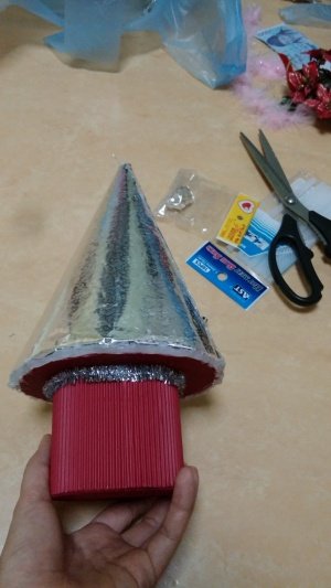 요레 꼬깔 모자에 은색 포장지 씌우고 밑에 받침은 적당한 크기로 잘라서 붙였구요