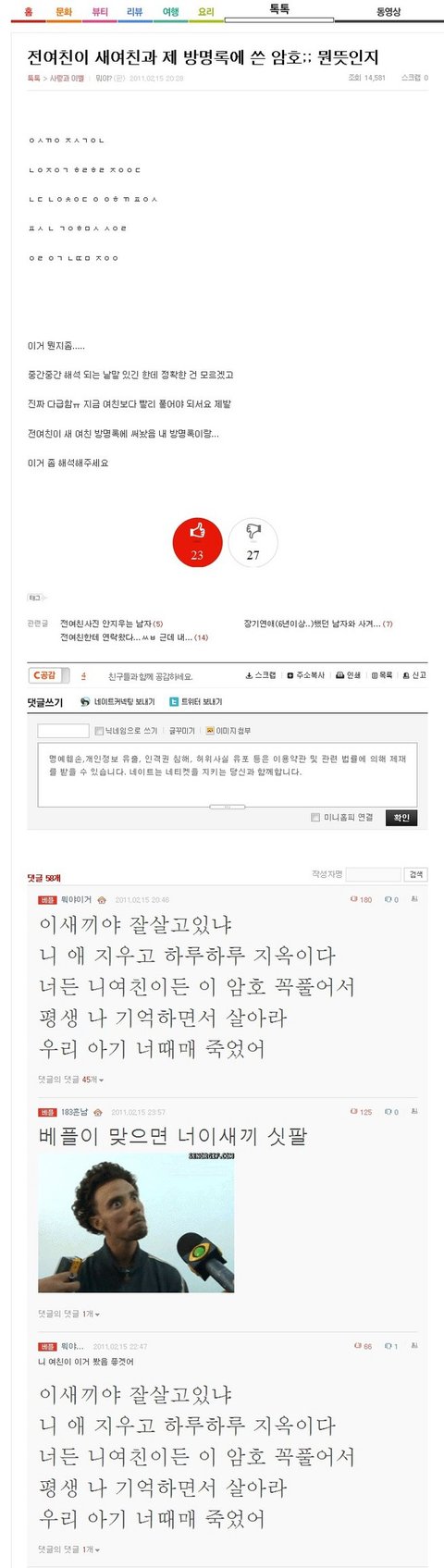 전여친이 새여친이랑 제 방명록에..