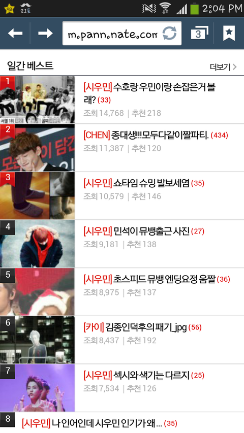 항상 시우민 톡분들이 일간베스트 순위 점령하시는거보고 부럽고 대단하시다고 생각했는데..ㅠㅠ