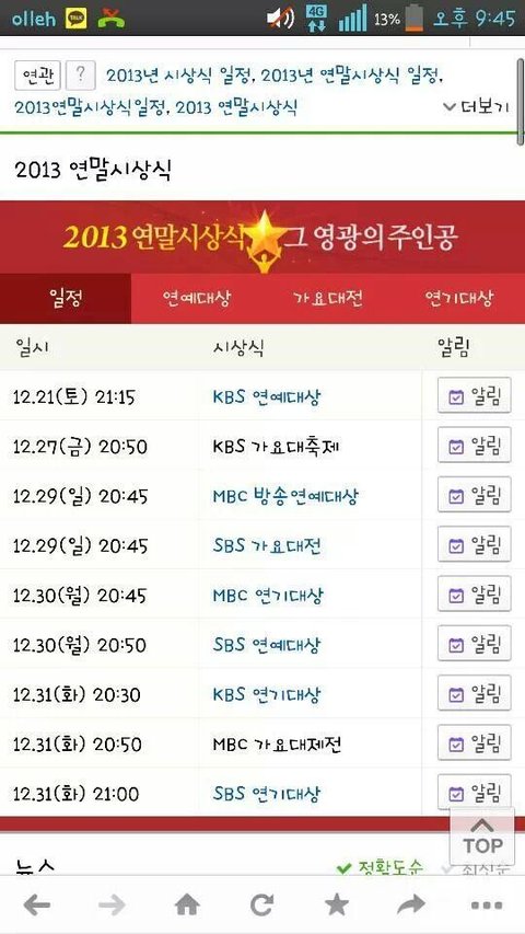 연말 시상식 일정 참고해!