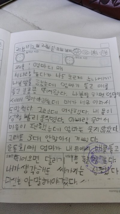 엉덩이 세대를 맞고 하룻동안 예쁜말만 써야하는 벌을 받아야함.