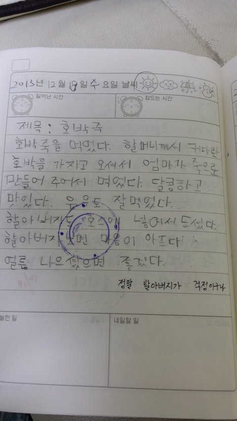 운전하고 내려가실 할아버지 걱정에 쓴 일기..
