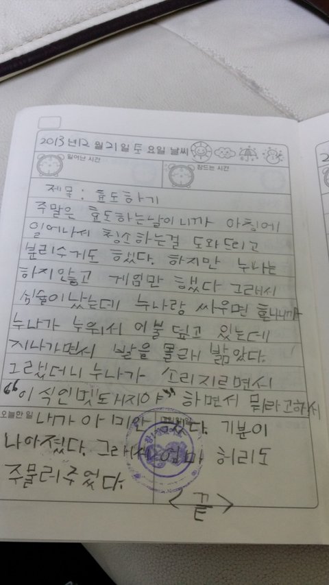 일기에 쓴다고해서 알아서 하라고 했음.