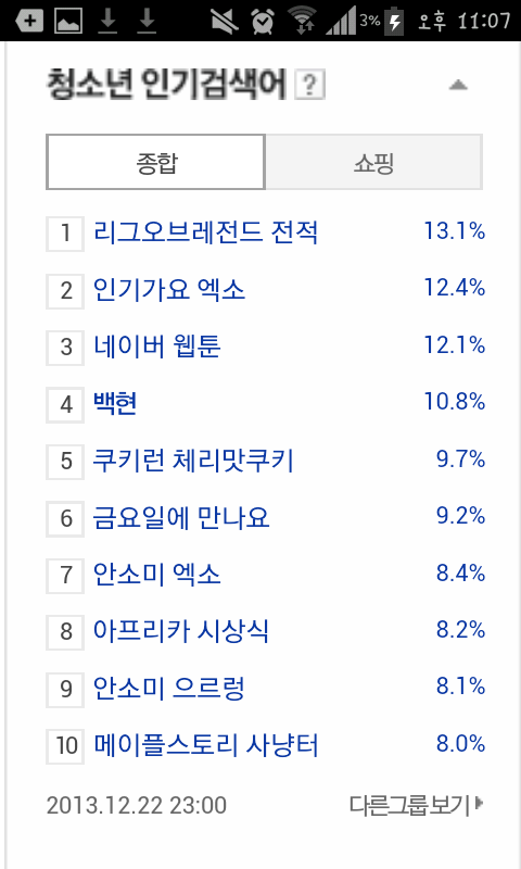백현이오늘청소년인기검색어3번ㅋㅋㅋㅋㅋ