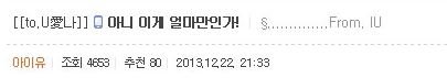 2013년 12월 22일 한밤 중 오랜만에 공식 팬카페 '유애나' 에 프롬유를 쓴 아이유.