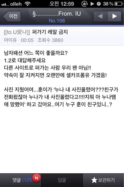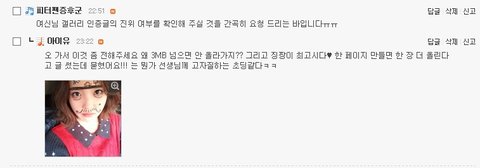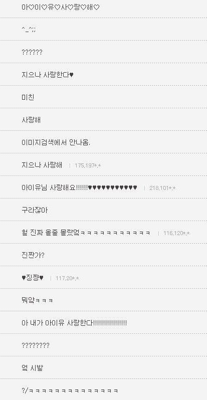 아이유가 글을 계속 올려서 실제 아이유와 가짜 아이유를 구별하지못한 한 아이유팬이 첫댓글에 이렇게 남김 ㅋㅋ