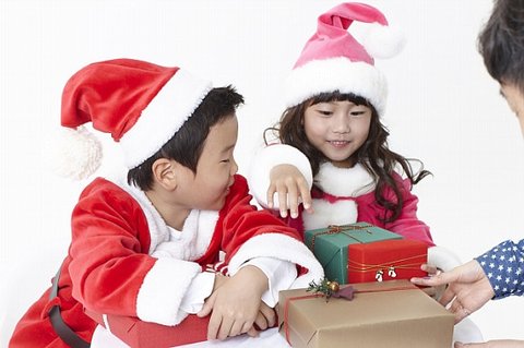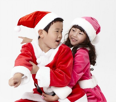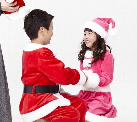 크리스마스를 맞아 산타클로스가 되어서 화보를 찍은 윤후와 송지아ㅋㅋㅋ