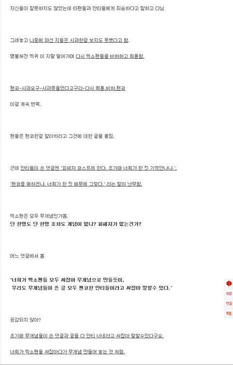 사실 저도 엑소팬들과 다투기도 했고 말싸움도 해봤지만 쓸모없다는 생각도 들고