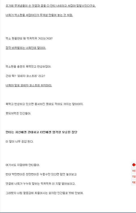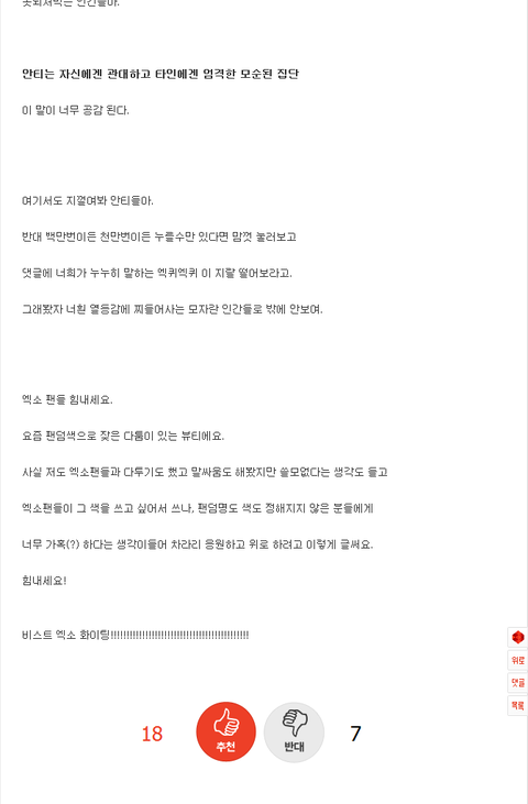 댓글에 너희가 누누히 말하는 엑퀴엑퀴 이 지랄 떨어보라고.
