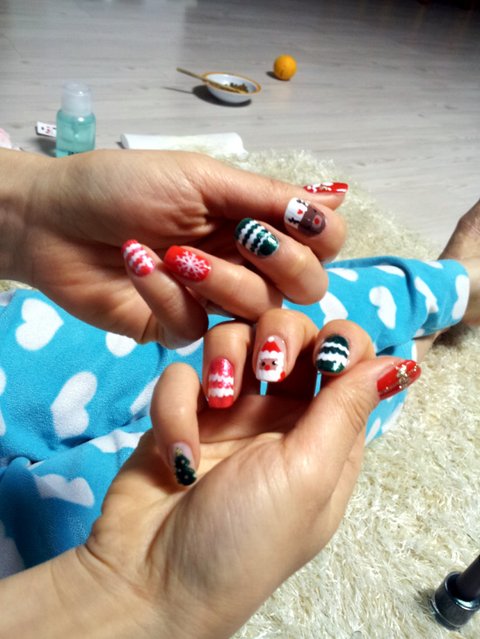 바로 어제!! 엄청 공들여서 한 크리스마스 기념 네일아트♡