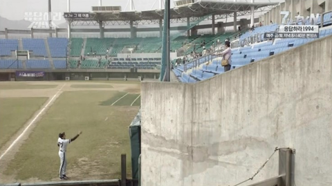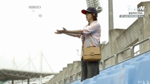 1. 칠봉이가 나정이에게 야구공을 던져주고 나정이가 손을 내밀어 받는 장면이 있다