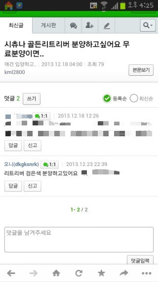사진이 이렇게 와서 저희 와이프랑 통화를 할때저희 집 카네코르소 6개월령 아이사진을 보고크기가 저희 아이랑 비슷하다고 하여서 일단만나서 입양 할지 말지 결정을 하자고 했습니다그게 맞는 절차라고 생각하구요 그래서 2013년 12월 24일 3시 40분경 하얀색 승용차를 타고아이를 보니 사진속아이보다 2~3배는 큰 라브라도 리트리버 성견이타고 있었습니다 강아지를 내려보니 통제도 안되고 짖으며 사람말을 듣지도 않고 이 아이를 키우게 된다면 저희가 통제가 되어야하는데 저희 와이프도 끌려다니고 남자인 저도 끌려다니고 심지어 데려오신 분도 끌려다녔습니다 그래놓고 하시는 말이"밖이 추워서 이러는거다. 저희집에 데려가시면 말을 잘듣습니다"이렇게 이야기를 하셔서 같이 저희집으로 왔습니다오자마자 저희 아가들 물어 뜯고 짖고 집안 곳곳에 오줌을 흩뿌리고 다녔습니다그래서 못키우겠다고 말을 하니 갑자기 차를 주차할곳이 없어서저희집 바로 옆 주차장에 경비원분께 부탁해서 잠시 주차를 했으니차를 다른곳에 주차하고 오겠다고 말을 하시길래 아이가 통제가 되지않으니 한분은 여기 남아서 강아지 통제를 해달라고 했더니무시하고 내려가서 차를 타고 도주를 했습니다전화를 하니 받지를 않고 무시하고 수분뒤 문자로 "차델때가 없어서 출발해요~이쁘게 키우세요"라고 문자가 와서 "얘기도 안끝났는데 그냥 가시나요?"했더니 "무슨 얘기요??" 이러시길래"키우라는걸 문자로 하고 그냥가세요?"하니까 문자 답도 하지않습니다 (초록색이 저희가 보낸 문자)그래서 집에 둘수 없어서 밖에 와이프가 데리고 나가있으니주차 경비원이 와서 "이렇게 큰 아이가 여기 왜 있어요?" 라고 하셔서 상황을 설명했더니 도주한 아이 주인을 알고 도망갔다고 말을 해주셧습니다하도 화가나서 유기견 보호센터에 전화를 해서 "제가 잘키우겠다는 말도안하고 도주를 했다"라고 얘기를 하니 그건 범법행위라고 인계도 끝나지않았으므로 책임은 전견주에게 있다고 말씀해주셧습니다그리고 보호소에 있던 아이라 관할 보호소에서 허락을 받지않았다면 무기징역에 처한다고 말씀도 해주셧습니다일체 저희랑 계약서같은것도 작성하지 않았구요그리고 묶여있는동안 너무 짖고 말도 듣지않아서 제가 너무 답답해서 머리 긁으려고 손을 위로 올렸더니아이가 바닥에 뒤집어서 누운뒤 덜덜 떨면서공포에 찬 눈빛으로 기가 죽어서 저를 바라보았습니다전견주한테 엄청 맞은걸로 추정됩니다 30분정도 뒤에 유기견 보호센터에서 차를 타고 오셔서 상황 설명을 했더니 전견주가 나쁜놈이라고 말씀하시고 데려가셧습니다